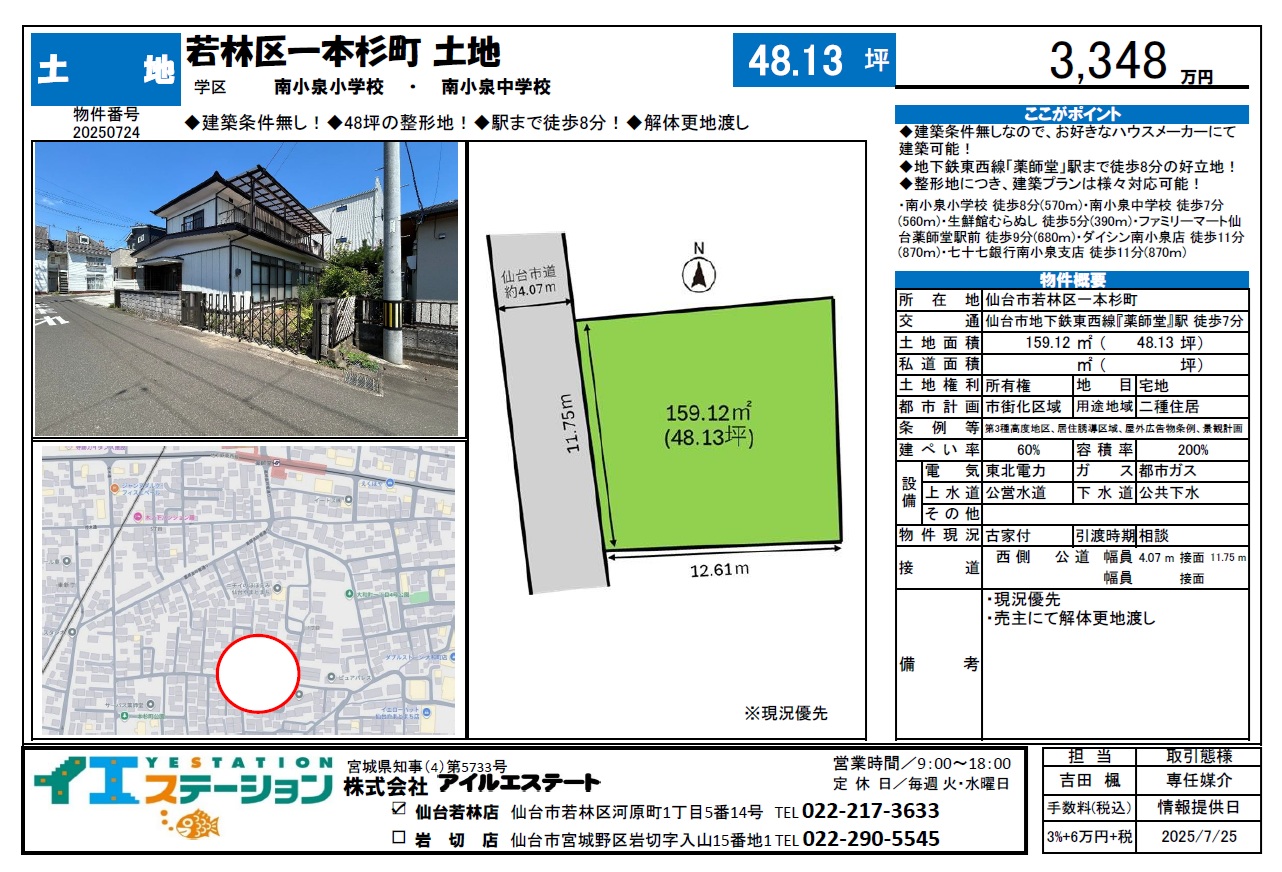 若林区上飯田3丁目土地、おかげさまでご成約いただきました!