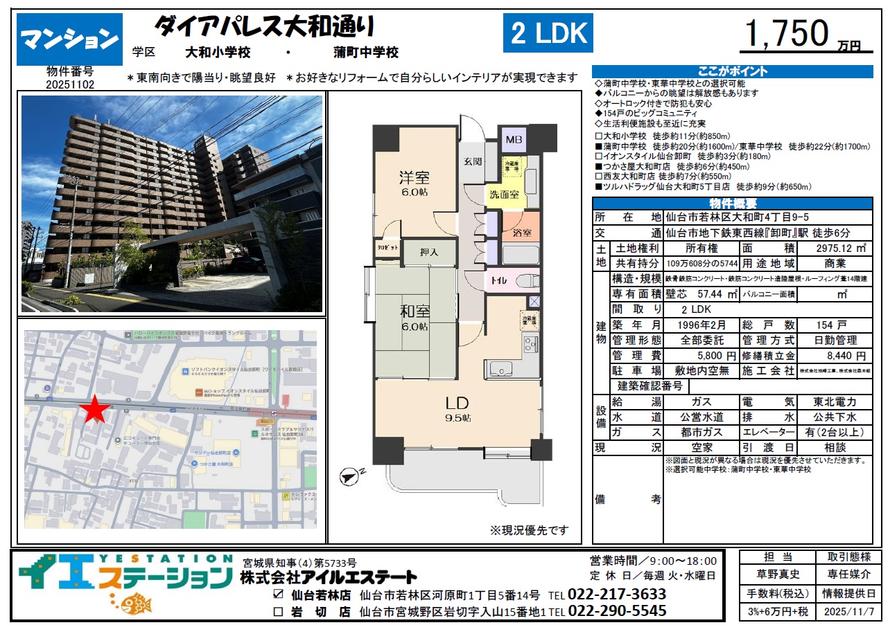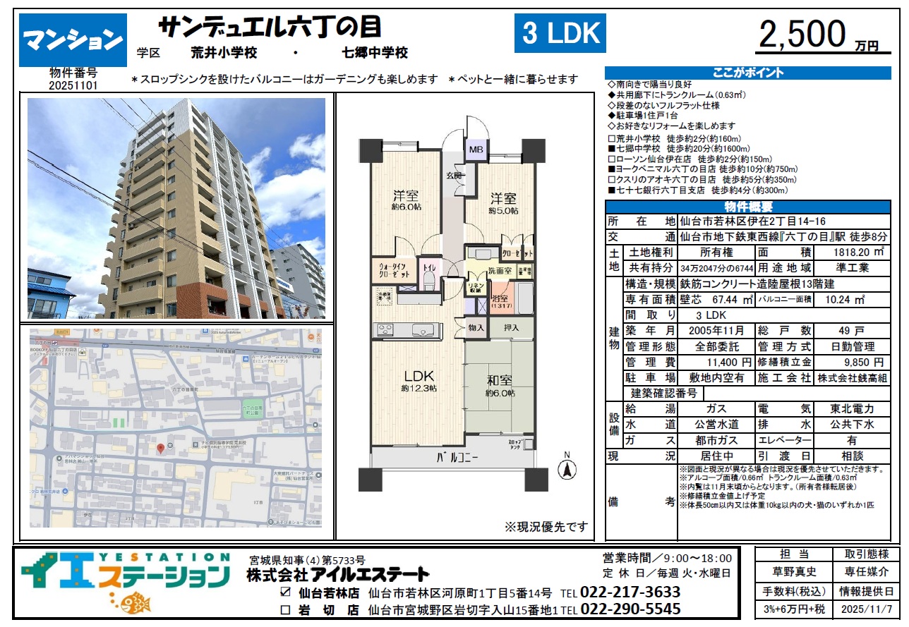 宮城野区栄2丁目 土地、おかげさまでご成約いただきました!