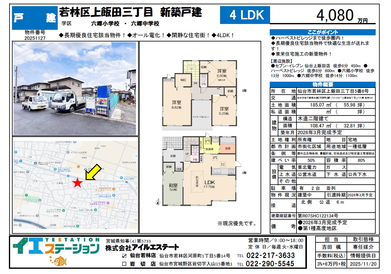 若林区上飯田2丁目土地(B区画)、おかげさまでご成約いただきました!